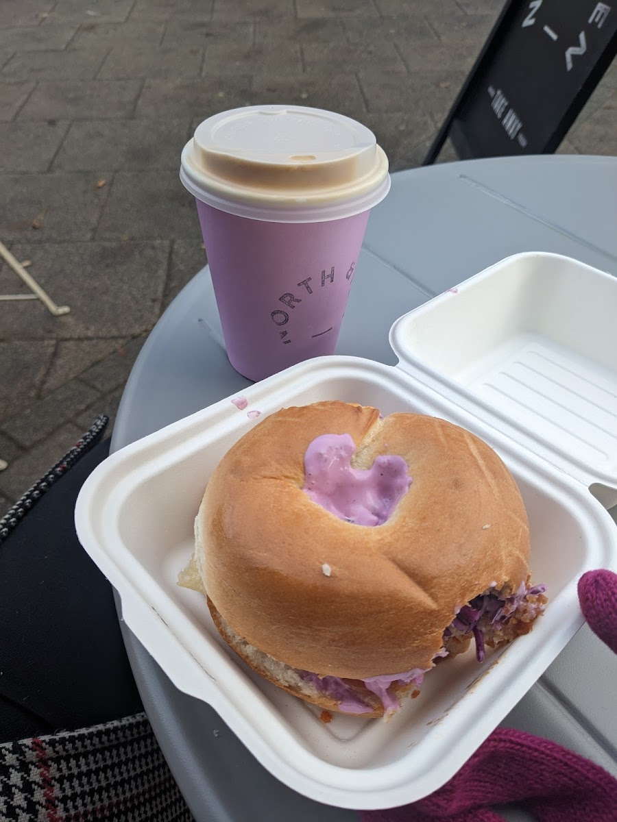 Great place to grab a brilliant coffee and a bagel, sit outside and enjoy. No pictures the bagel was soo nice I had to eat it straight away and the coffee and mocha was excellent. If you’re looking for a fresh bagel look no further.